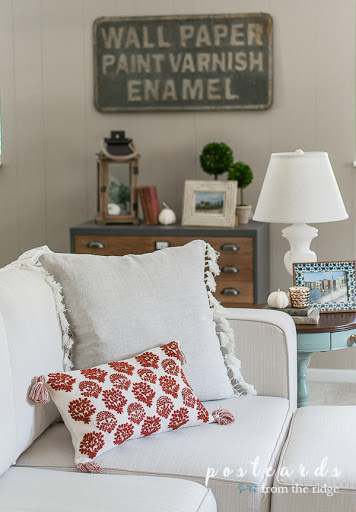 Our master bedroom style has evolved over the past few years, but I usually have a white or off white quilt but change out the duvet and accent pillows for fall and Christmas. Here are some items we’ve used or ones that will give you the same look.